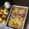 ادفئ الفرن على درجة 220 درجة مئوية وضع الصينية في الرف السفلي لمدة 25 دقيقة.