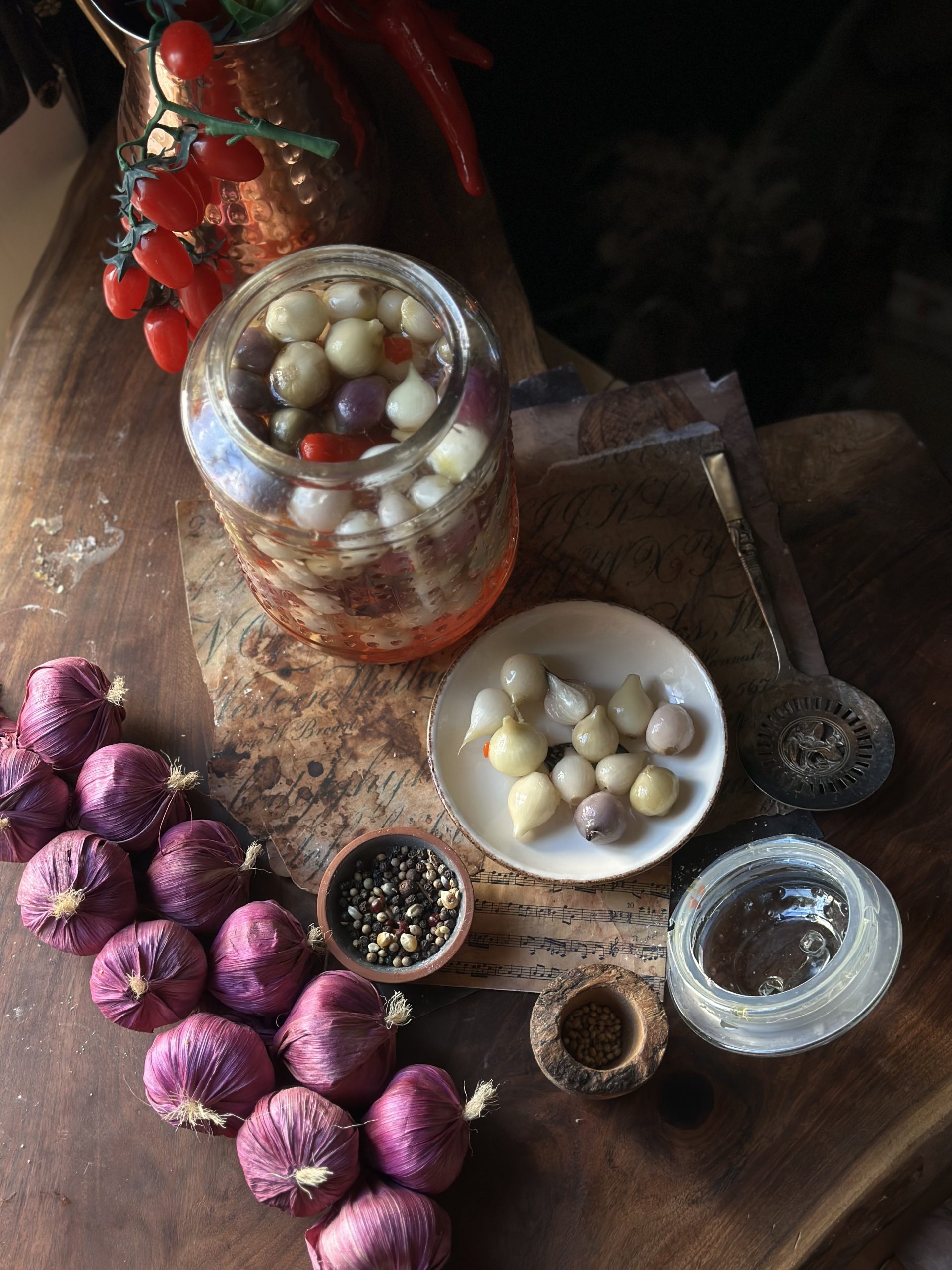 - Place the onions in the jar and pour the hot brine over them. You can also add a tablespoon of oil on top. Close the jar tightly.