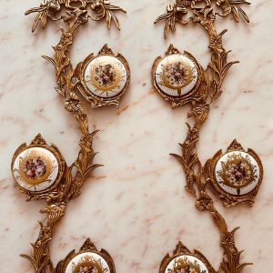 But that’s not all – this unique set also includes two hanging brass tree branch florals, adding a whimsical touch to your space. Crafted with intricate detailing, these brass tree branches feature delicate flowers and leaves that beautifully complement the hand-painted porcelain wall decor. Hang them together or separately, these tree branch florals will add a charming and nature-inspired element to your home decor.